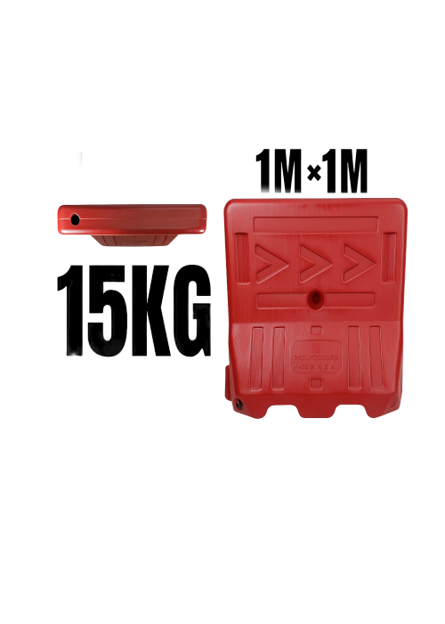 حواجز بلاستيك لتنظيم الطرق مصنوعة من مادة HDPE، بمقاس 1×1 متر ووزن 15 كجم فارغ، مزودة بفتحة علوية للتعبئة بالماء أو الرمل مع سدادة محكمة، وقواعد عريضة لثبات أعلى ومقاومة للرياح. تتوفر بألوان: أحمر، أصفر، برتقالي، وتستخدم لتنظيم المرور، فصل المسارات، وتأمين مواقع العمل والمواقف والفعاليات.