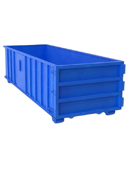 حاوية حديد مقاس 20 ياردة للاحجام الكبيرة مصنوعة من صاج سابك عالي الجودة بسماكة 4 ملم للجوانب و5 ملم للأرضية، مزودة بهوك مبروم سماكة 55 ملم مخارط صلب، وأبواب بسماكة 4 ملم مع مفصلات صاج 20 ملم مدعمة بيو 14 سم. لحام كامل داخلي وخارجي لتحمل ظروف العمل الشاقة. مزودة بـ 4 كفرات رول مقاس 8 بوصة مدعمة بمبروم سماكة 43 ملم لسهولة الحركة.