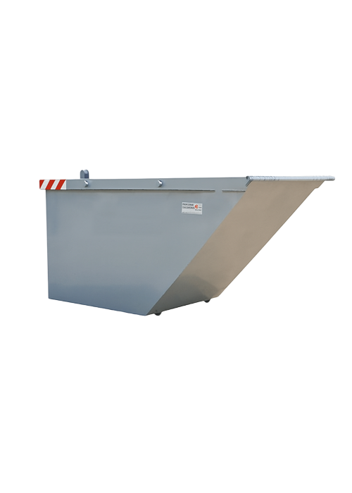 حاوية متينة مصنوعة من صاج أسود عالي الجودة بسماكة 2 ملم مع دعامات وتقويات بسماكة 3 ملم ولحام كامل لتحمل أقسى ظروف العمل. مزودة بسيخ تفريغ 32 ملم مجدول مشرشر، وأربع كفرات حديد (اثنان ثابتان واثنان متحركان) لسهولة الحركة، إضافة إلى مقابض جانبية وشَنكار سفلي مقوى بصاج 8 ملم للتفريغ بالويت. يتم تفريغ الحاوية عبر سيارات المكابس الهيدروليكية، وتُطلى بدهان عالي الجودة مع وضع الشعار. أبعاد الحاوية 1.5×1×1 م.