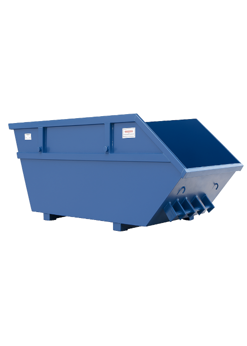 حاوية حديد سكيب لودر مقاس كبير مصنوعة من صاج أسود سابك سماكة 4 ملم لجميع الجوانب والأرضية، مدعمة بجسور U-Channel صب (10 سم للجانبين والعلوي، 7.5 سم للأرضية). مزودة بـ 7 هوكات من مبروم 43 ملم لسهولة الرفع وخطافات جانبية لربط الشراع. لحام كامل داخلي وخارجي لتحمل ظروف العمل الشاقة.