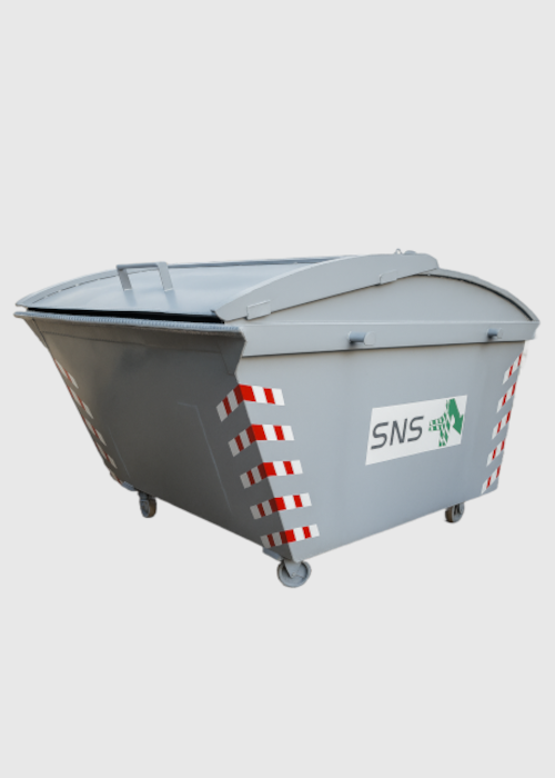 حاوية حديد مقاس 2 ياردة بأبعاد 1×1×1.5 م، مصنوعة من صاج عالي الجودة سماكة 2 ملم مع دعامات وتقويات بسماكة 3 ملم ولحام كامل لتحمل أقسى ظروف التشغيل. مزودة بسيخ تفريغ مجدول مشرشر قطر 32 ملم وشنكار سفلي مقوى بصاج 8 ملم للتفريغ بالوير. مزودة بأربع كفرات (اثنان ثابتان واثنان متحركان) مع مقابض جانبية لتسهيل الحركة. الغطاء نصف ثابت ونصف متحرك مصنوع من حديد عالي الجودة ومثبت على رمان بلي لسهولة الفتح والإغلاق. الحاوية مصممة للتفريغ عبر سيارات المكابس الهيدروليكية ومطلية بدهان عالي الجودة مع إمكانية إضافة الشعار حسب الطلب.